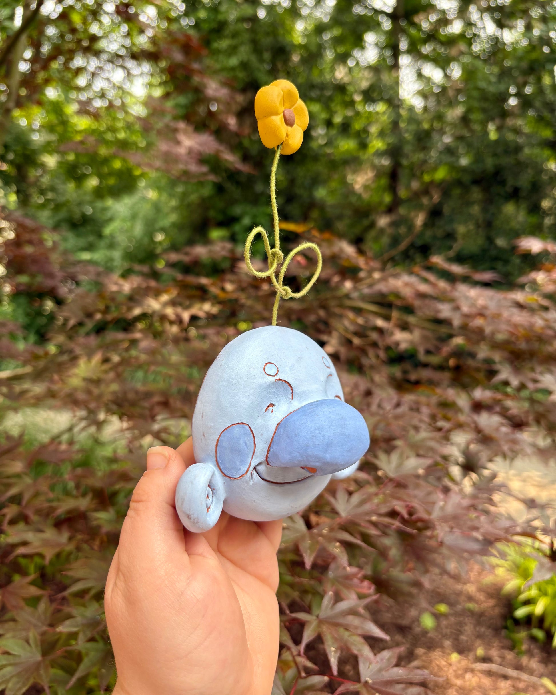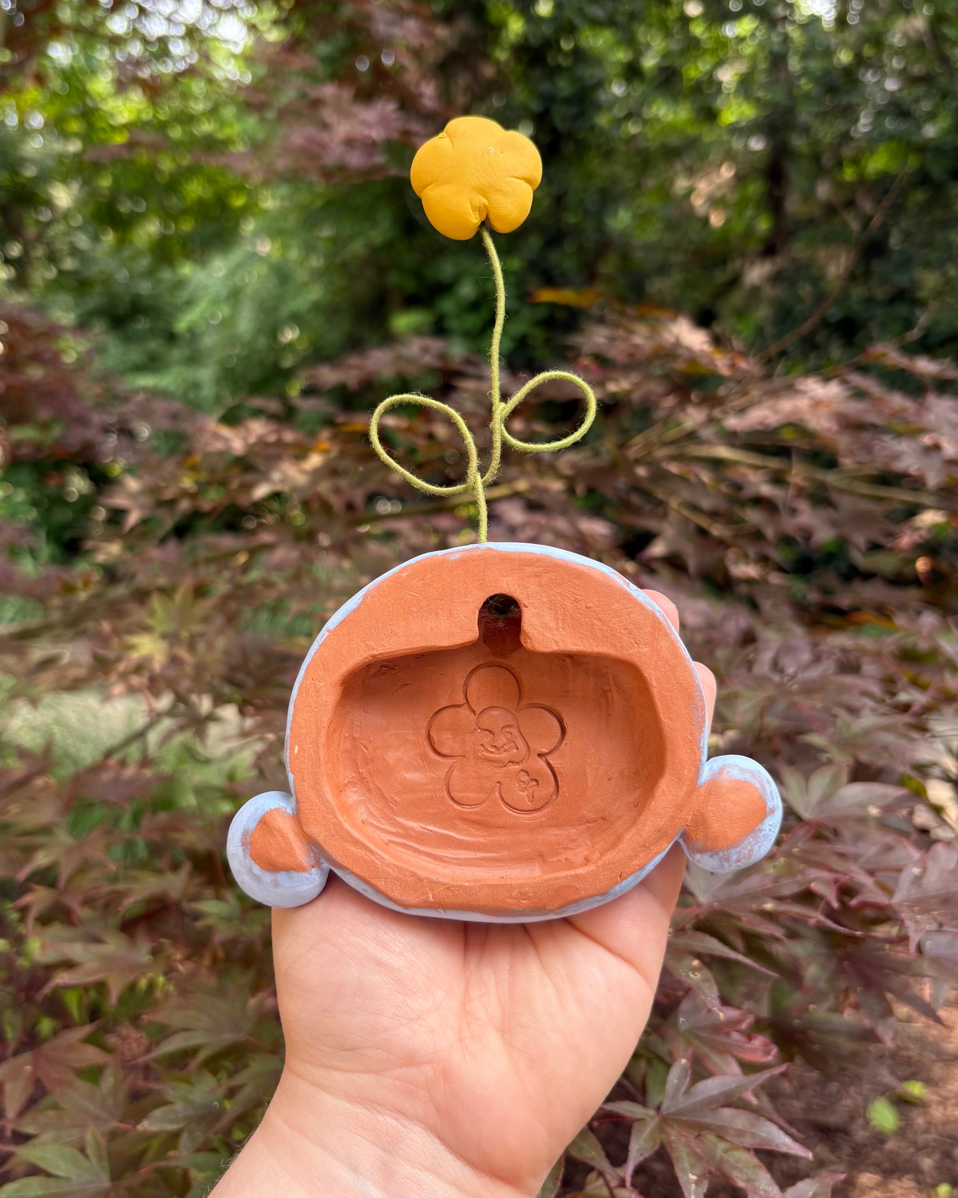 Blue Wall-Hanging Mask with a Flower